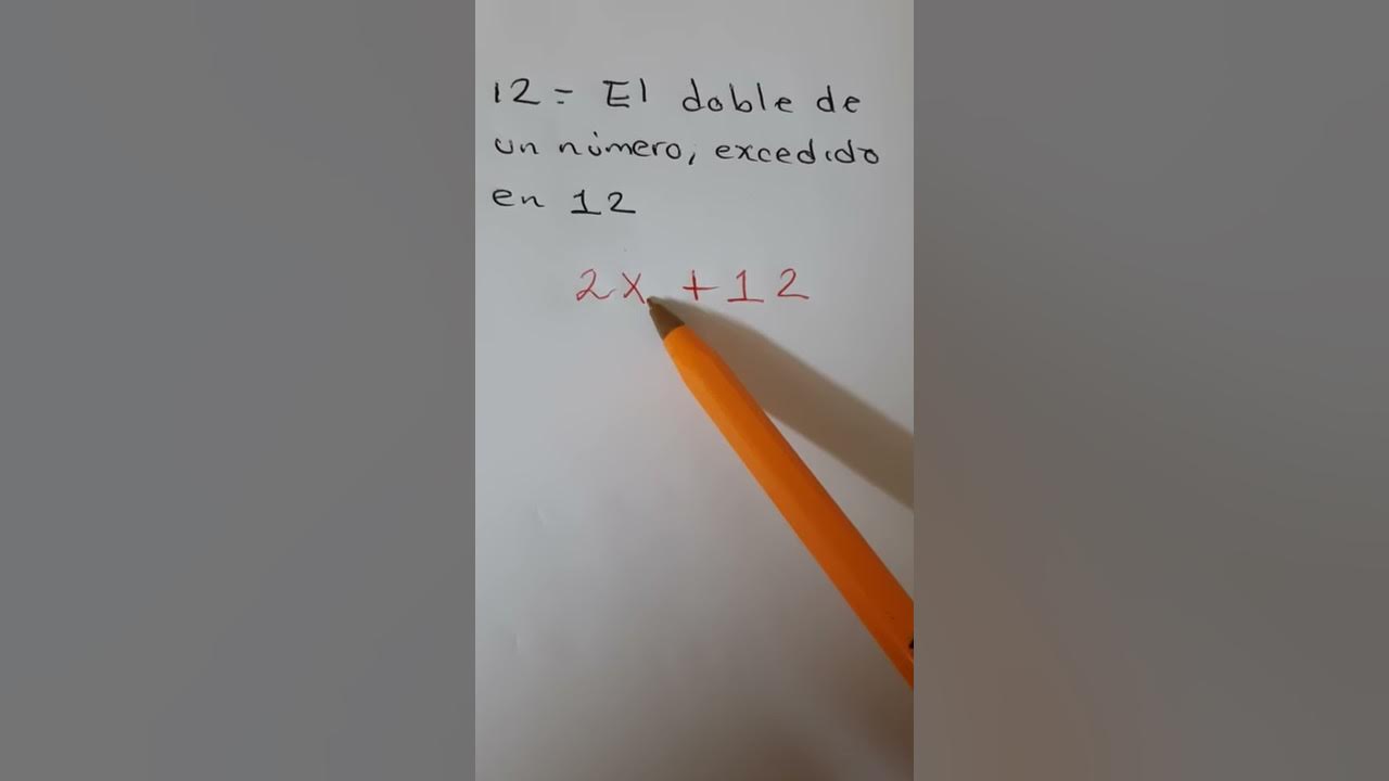 Con su ayuda podemos resolver muchas situaciones, como las que se plantean en los siguientes problemas: El doble de un número, el triple de un número: 2x, 3x ; Dos números: x, y; El triple de un número aumentado en cinco unidades: 3x + 5; Un número par: 2x; El doble de un número disminuido en una unidad: 2x-1; Un número impar. 2x + 1. El doble de un número equivale al triple de su antecesor excedido en siete. Ninguna opción representa el enunciado. 2. Multiple Choice. Edit. 5 minutes. 1 pt. La edad de una persona hace 10 años.. El área de un cuadrado de lado x unidades. A = x 2 A=x^2 A = x 2. A = X + X A=X+X A = X + X. A = 4 x A=4x A = 4 x.